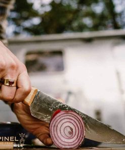 Un coltello che non teme nessun alimento con lama da 20 cm in acciaio inox X50CrMoV15 con aggiunta di cromo, molibdeno e vanadio per renderla resistente ed estremamente affilata.