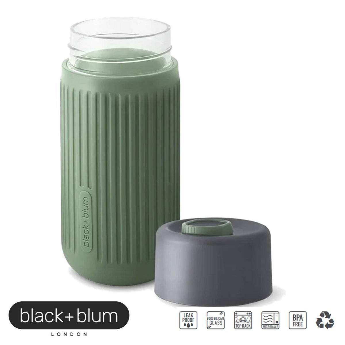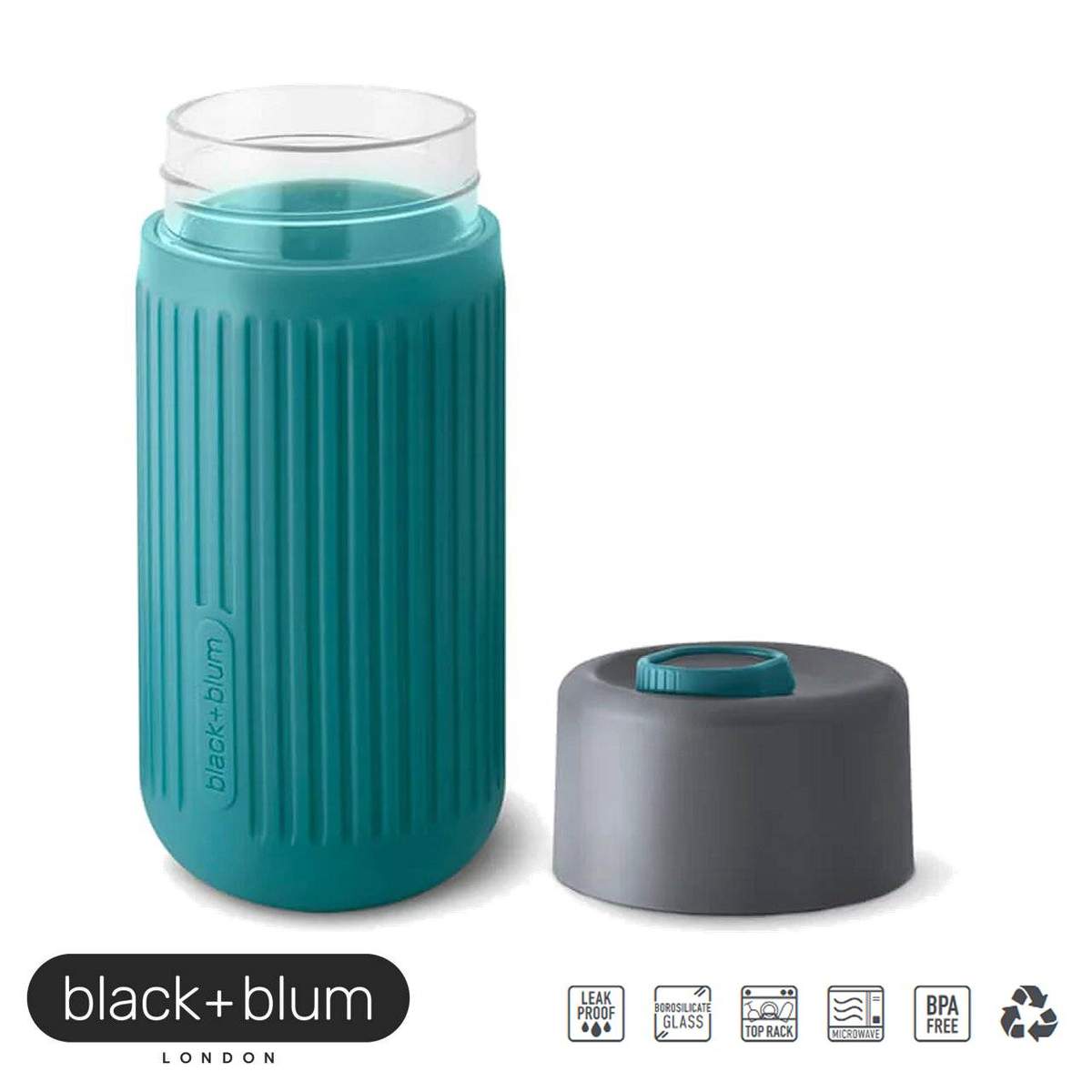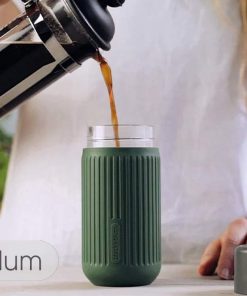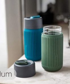 Black+Blum ha progettato la prima tazza da viaggio al 100% a prova di perdite sul mercato, completamente in vetro borosilicato soffiato a mano che non altera i sapori, protetto da un rivestimento esterno in silicone isolante e antiscivolo così eviti di scottarti le mani se la bevanda è troppo calda.